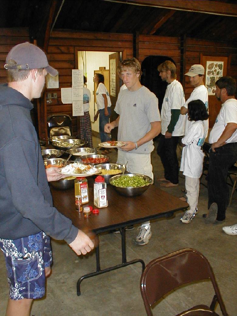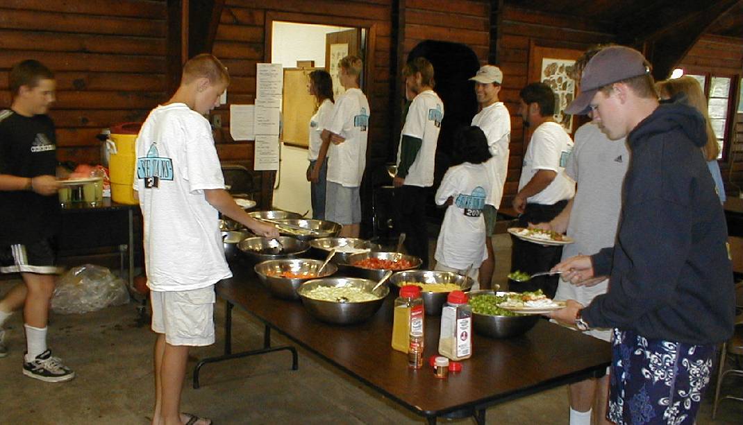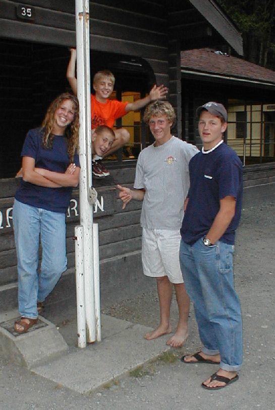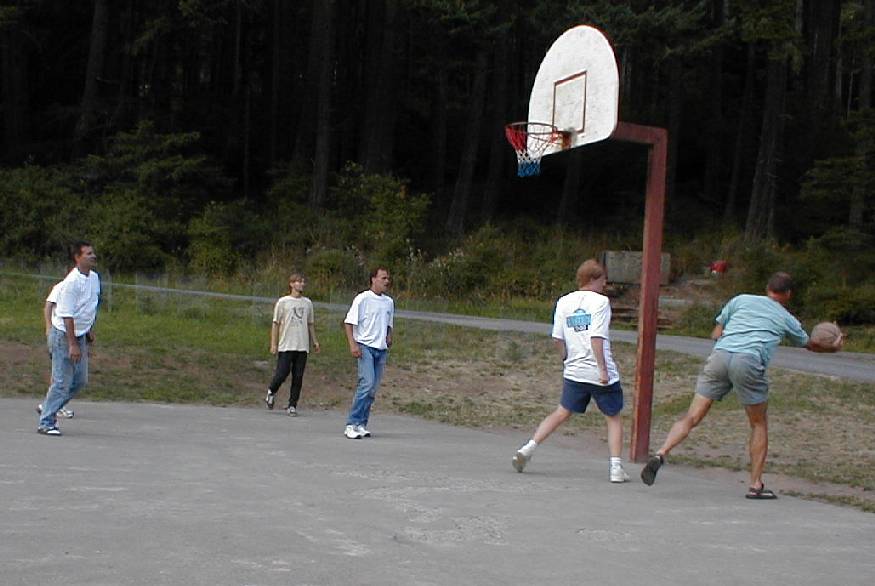 The base camp was in Moran State Park, at the Environmental Learning Center. Cabins were available to participants although some elected to camp. A number of forms of recreation were available such as a pickup basketball game, enjoying the outdoors, or hanging out (what the younger set did). The cafeteria was also a popular place to be where folks